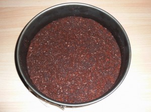 - Versare in uno stampo per dolci apribile, schiacciare bene la superficie con un cucchiaio e mettere in frigo per quasi un’ora.