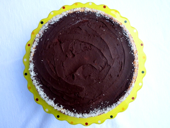 - Una volta estratto dalla tortiera potete decorarlo aggiungendo altra farina di cocco sui bordi per decorare.