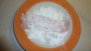 - Togliere le fette di carne dal frigo e passarle in abbontante farina da entrambi i lati.