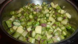 Cuocere per altri 2 minuti, sempre coperto, finché sia gli asparagi sia la patata risultano teneri.