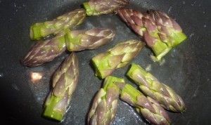 Fondere il resto del burro in una piccola padella e cuocere le punte con un poco di acqua, finchè non risultano tenere.