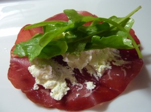 - Spalmarla su ogni fetta di bresaola insieme ad un pò di rucola, poi arrotolare.