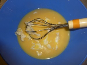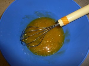 - Sbattere in una ciotola le due uova con mezzo cucchiaio di sale.