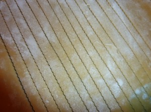 - Tirarlo fuori dal frigo, impastarlo leggermente per farlo ritornare morbido e poi stenderlo con un matterlo fino ad uno spessore di circa 5 millimetri.