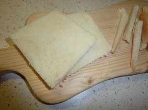 - Tagliare il pan carrè, eliminare i bordi ed inumidirlo leggermente in un poco di acqua.
