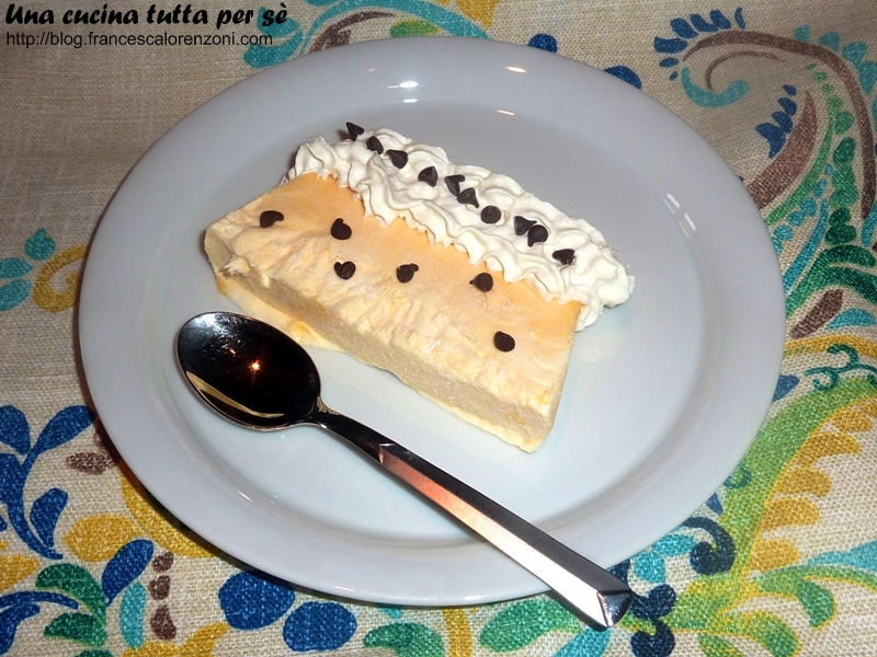 In una ciotola sbattere i tuorli insieme allo zucchero. A parte, montare la panna fredda di frigo fino a che non sarà ben ferma. Aggiungerla ai tuorli e allo zucchero, mescolando delicatamente fino ad ottenere un composto omogeneo. Versare in uno stampo per plum cake e riporre nel congelatore per almeno 4 ore.