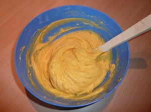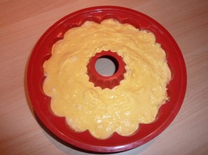 - Aggiungere gli albumi montati e trasferire tutto in uno stampo per ciambelle.
