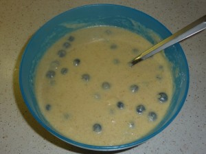 - Aggiungere gli ingredenti liquidi a quelli solidi, mescolare e aggiungere i mirtilli.