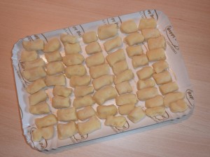 - Dividerlo in piccole striscioline, infarinarle e poi tagliarle con il coltello formando dei piccoli gnocchi.