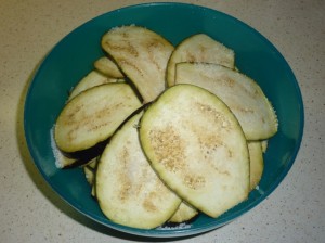 - Lavare bene le melanzane, tagliarle a fette, salarle e lasciarle riposare per un’ora.