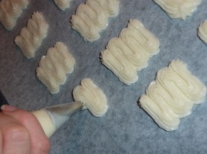 - Versarlo nella sac a poche e formare dei biscotti con la forma che preferite su una teglia coperta con carta da forno.