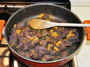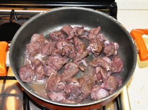 - Tirar fuori la carne e scaldarla in padella finchè non rilascia tutta l’acqua. Buttare tutto il resto della marinatura.