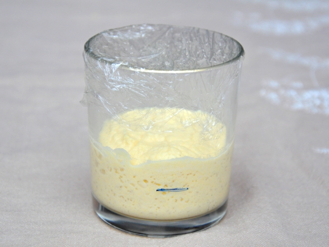 - Lasciar riposare per 3-4 ore a temperatura ambiente coperto da un canovaccio, poi utilizzare quello che serve per le ricette e lasciar riposare il resto fino al prossimo rinfresco (o, se non vi serve subito, lasciar riposare tutto fino al prossimo rinfresco).