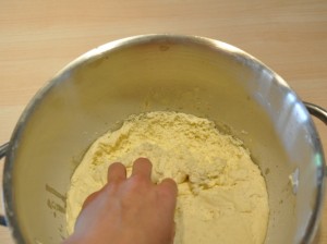- La sera prima mescolare tutti gli ingredienti, amalgamarli bene e impastare per almeno 10 minuti. Lasciare a temperatura ambiente per un’oretta, poi in frigorifero per la notte. Questo è il risultato.