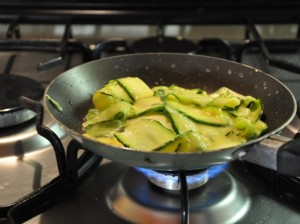 - Lavare le zucchine e tagliarle a fettine molto sottili.