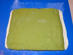 - Sovrapporre il rettangolo con il tè matcha su quello neutro, lasciando un piccolo bordino esterno da entrambi i lati.