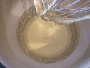 Aggiungere il sale e la crema di carote, continuando a montare a velocità media.