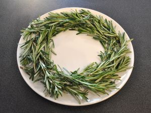 Disporre i rametti di rosmarino a cerchio in un piatto da portata.