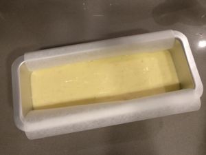 Versare l’impasto in uno stampo da plumcake rivestito con la carta da forno.