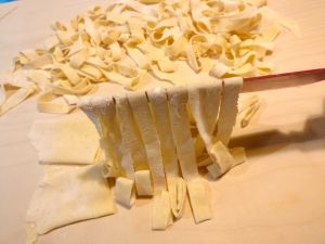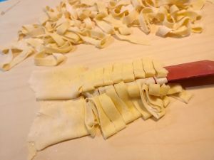 Mettere il coltello al centro e sollevare per ottenere le tagliatelle.