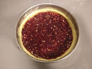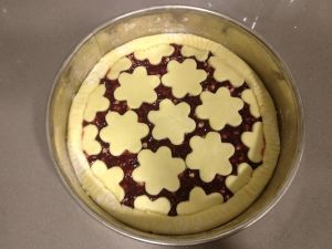 Stendere l’impasto con il mattarello ad uno spessore di circa mezzo centimetro e riempire con la confettura.