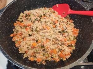 Versare direttamente nella padella con le verdure, che nel frattempo si saranno cotte.